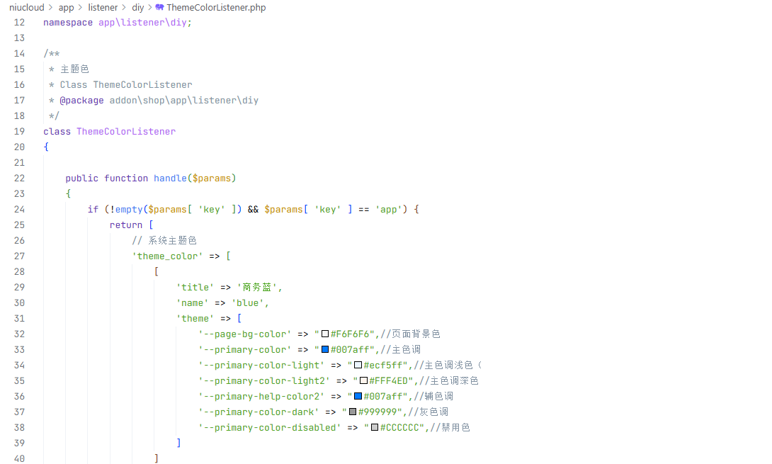 // 主题色 'ThemeColor' => ['app\listener\diy\ThemeColorListener']