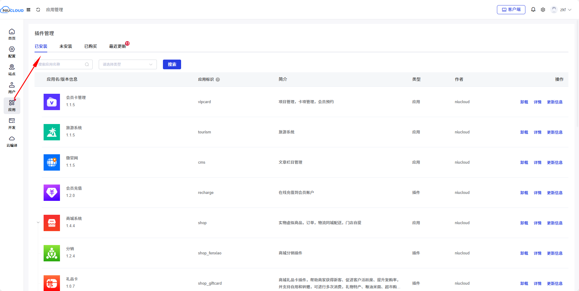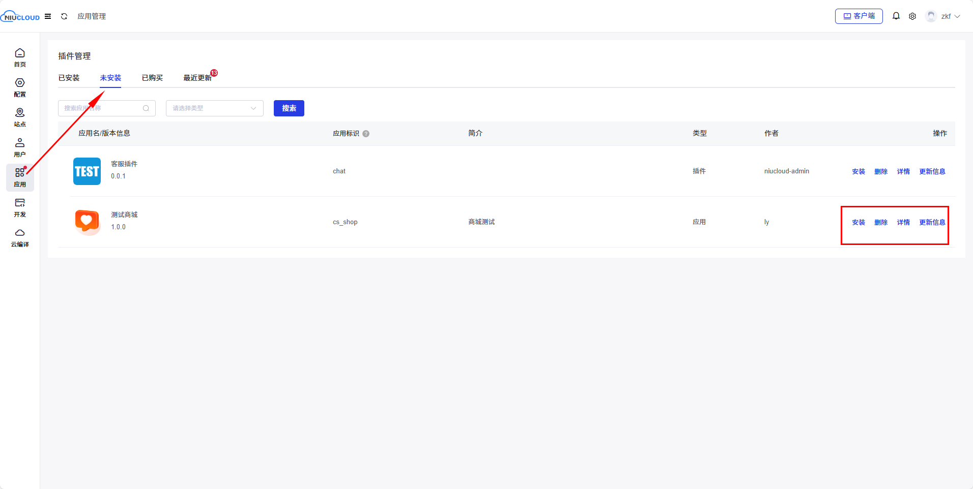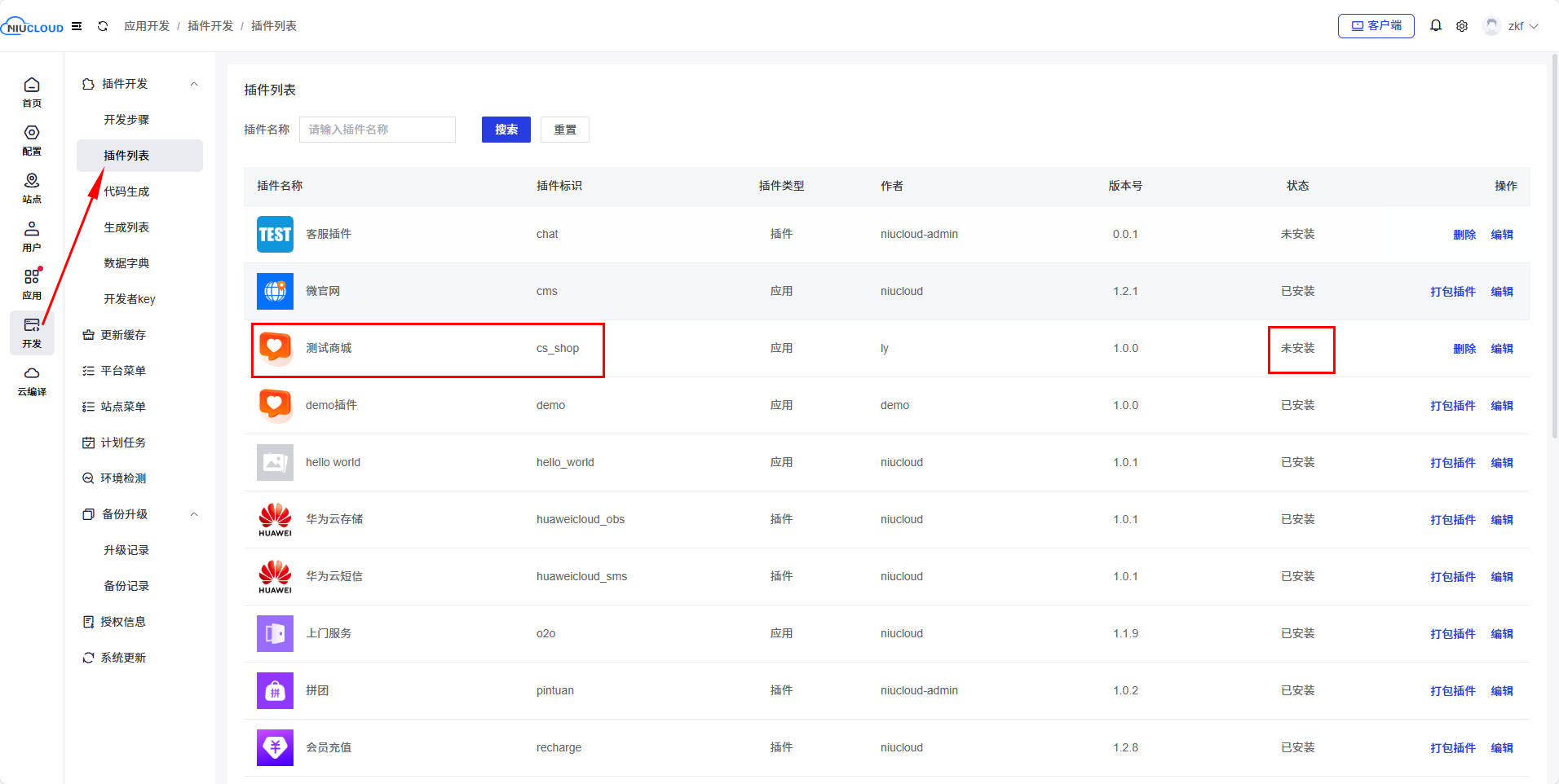 新建插件后,系统会在插件列表中显示新建的插件。但是是未安装的状态。