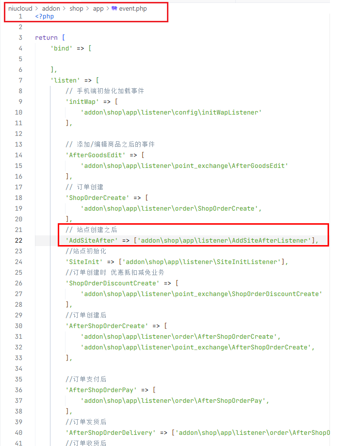'AddSiteAfter' => ['addon\shop\app\listener\AddSiteAfterListener']