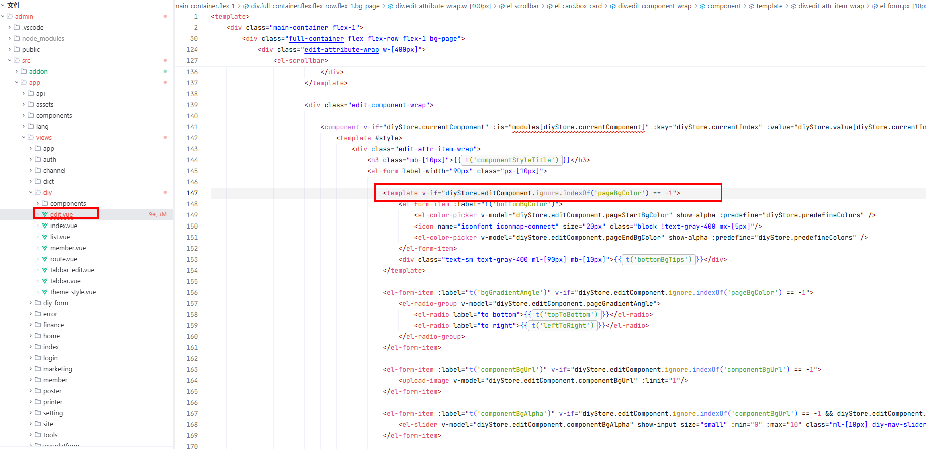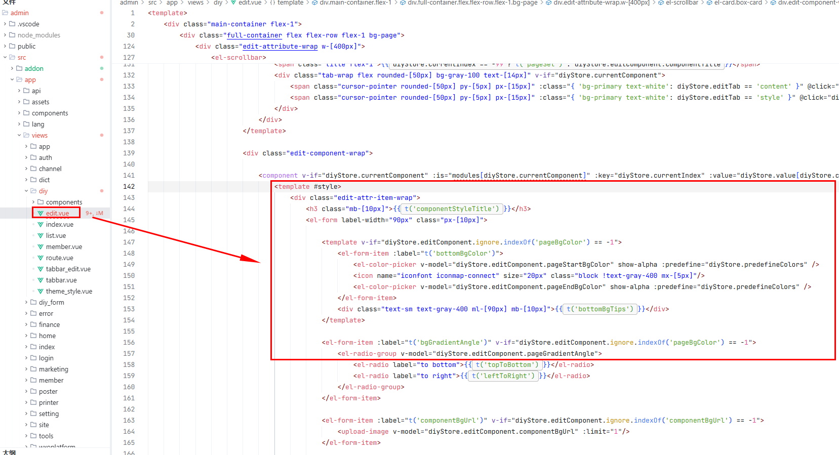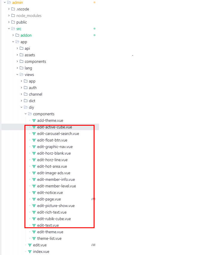 框架定义的自定义组件目录为:admin/src/app/views/diy/components