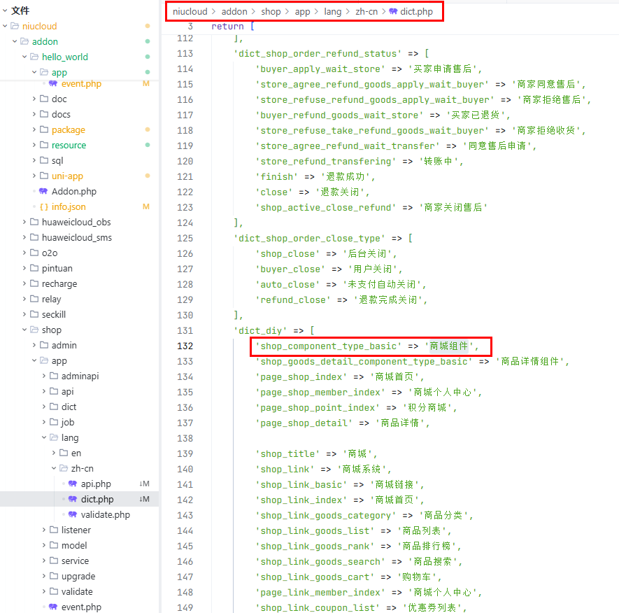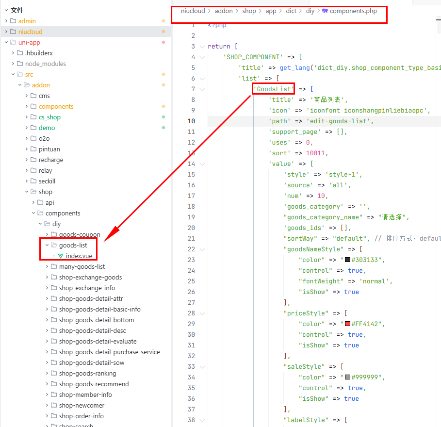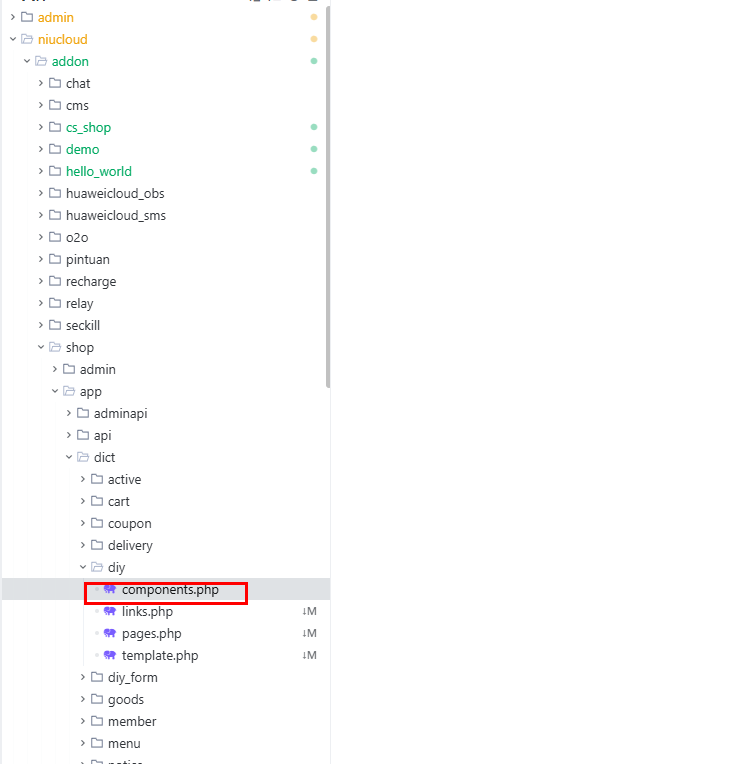 在niucloud/addon/shop/app/dict/diy/目录下,新建components.php文件
