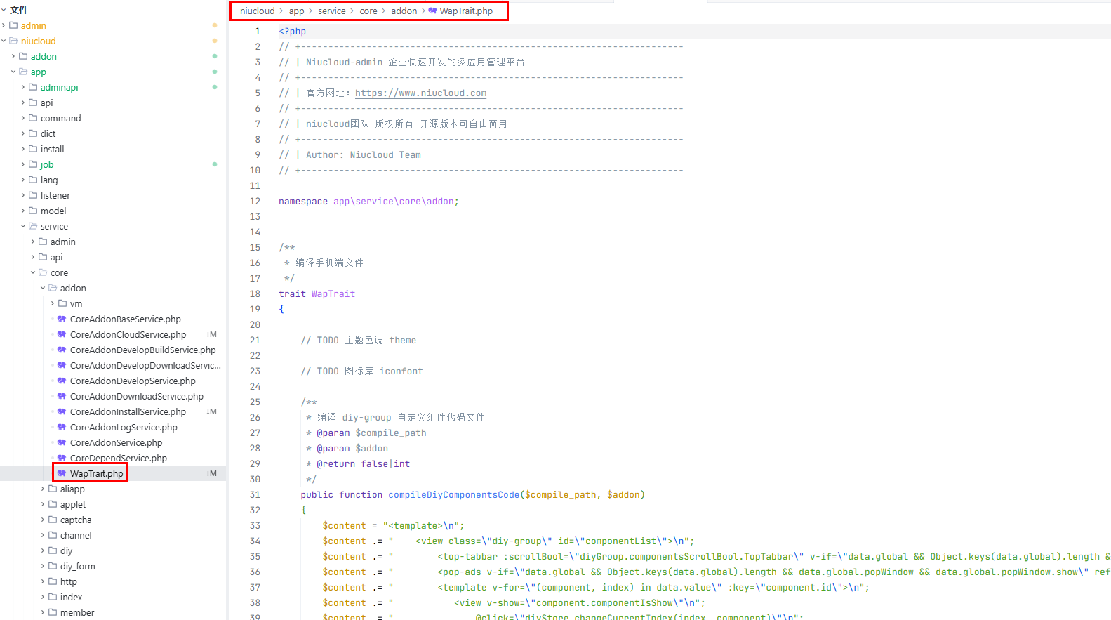 文件位置:niucloud/app/service/core/addon/WapTrait.php