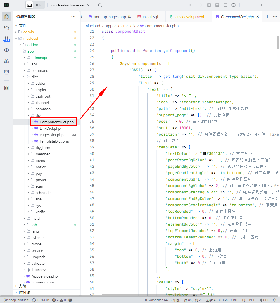 文件位置:niucloud/app/dict/diy/ComponentDict.php