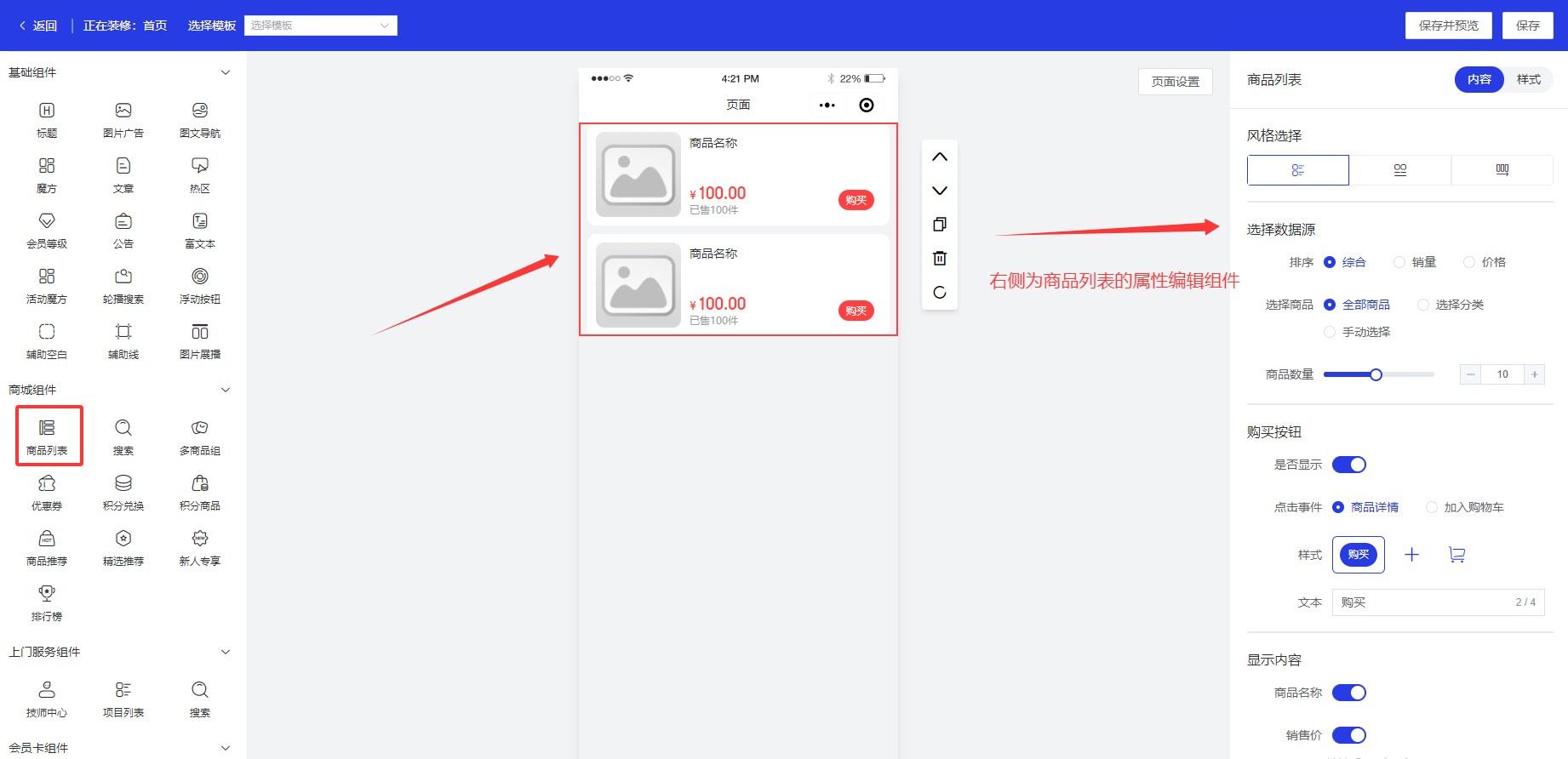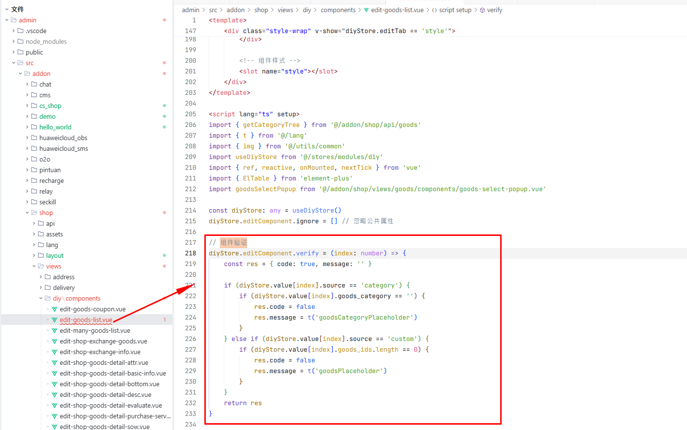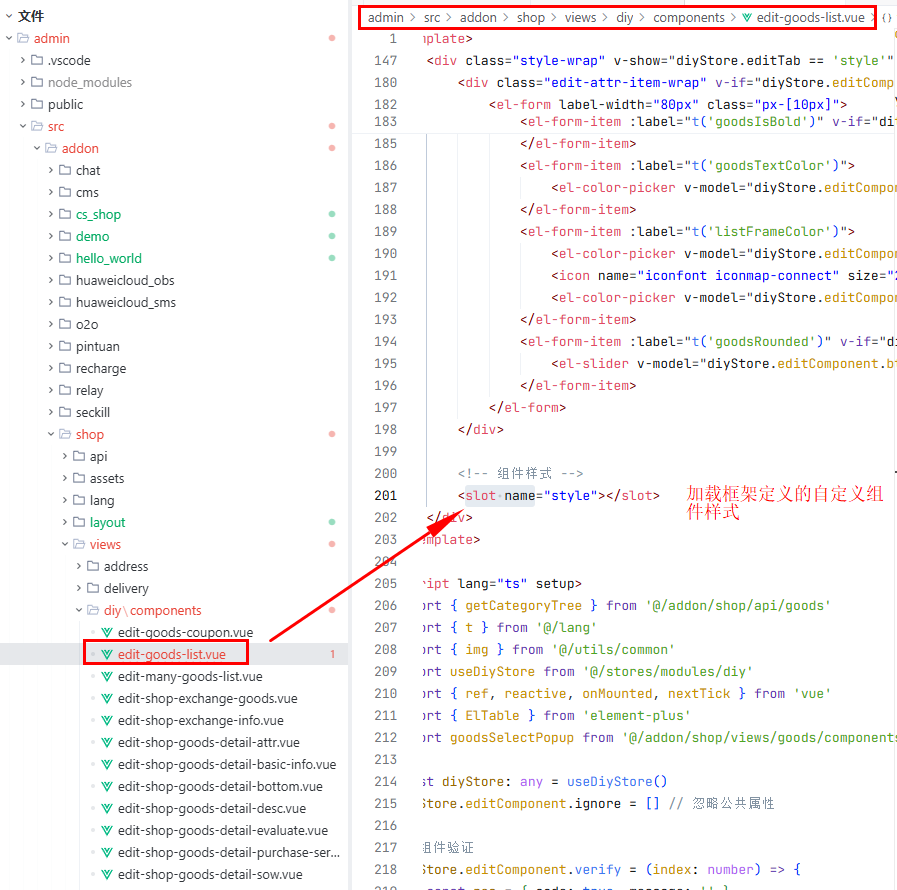 import diyGoodsList from '@/addon/shop/components/diy/goods-list/index.vue';完成上面的操作后,点击添加组件,即可看到渲染后的组件效果
