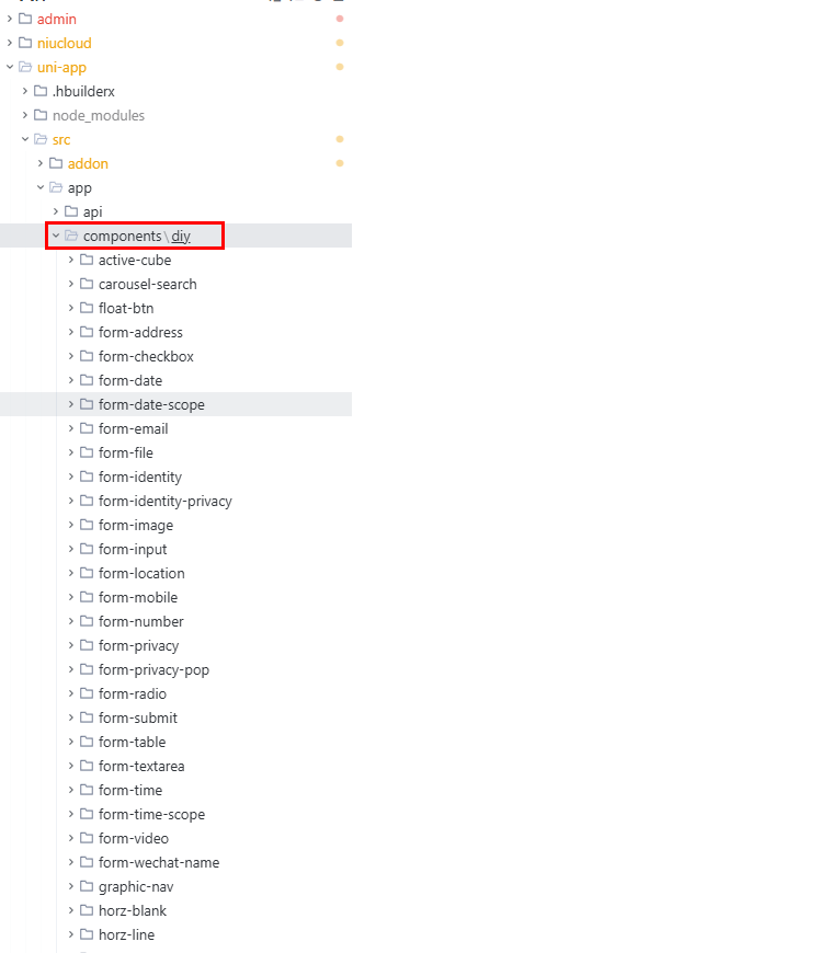 框架定义的自定义组件目录为:uni-app/src/app/components/diy