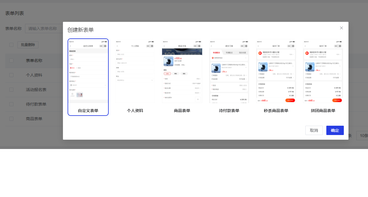 自定义表单装修效果图
