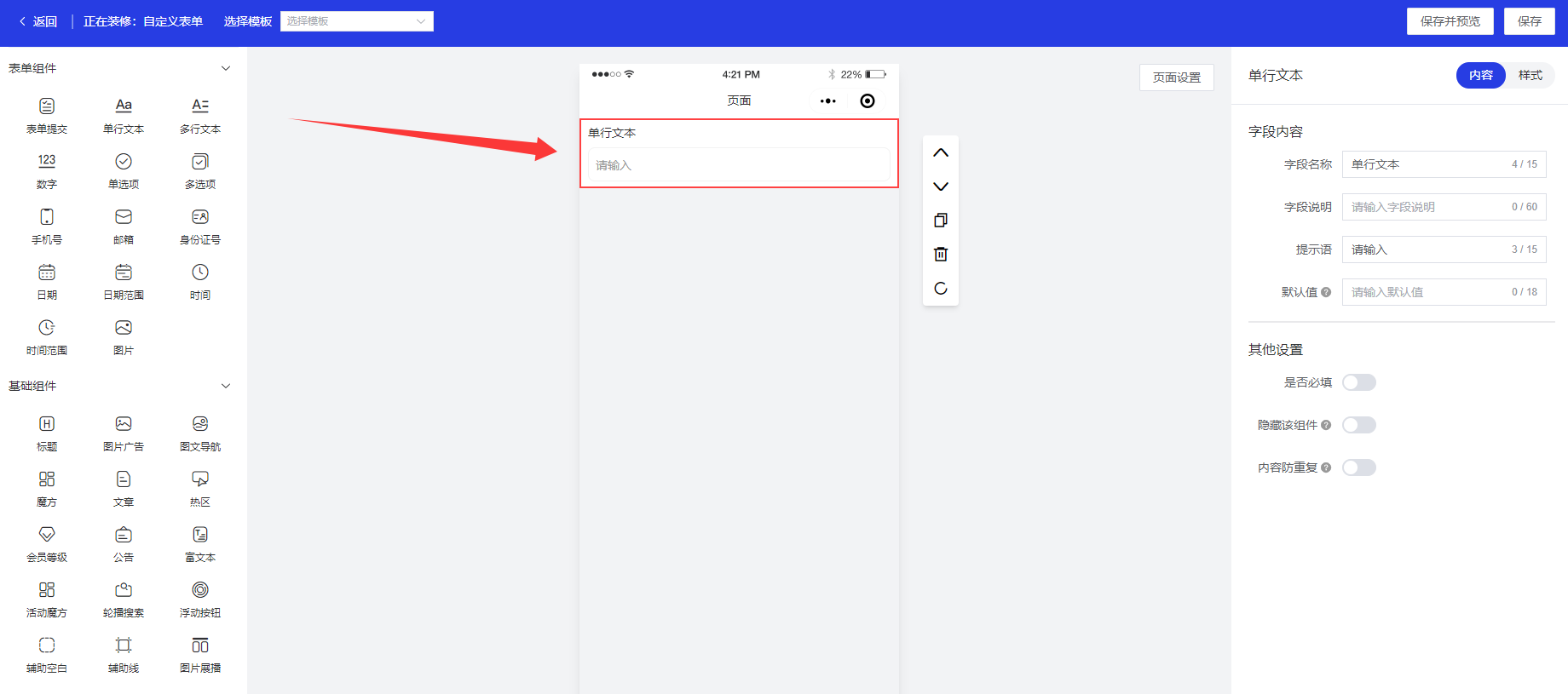 与自定义页面装修共用,万能表单也可以使用自定义组件
