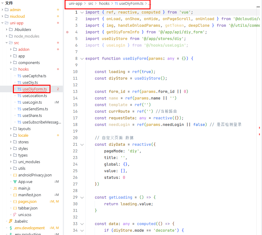 文件位置:uni-app/src/hooks/useDiyForm.ts