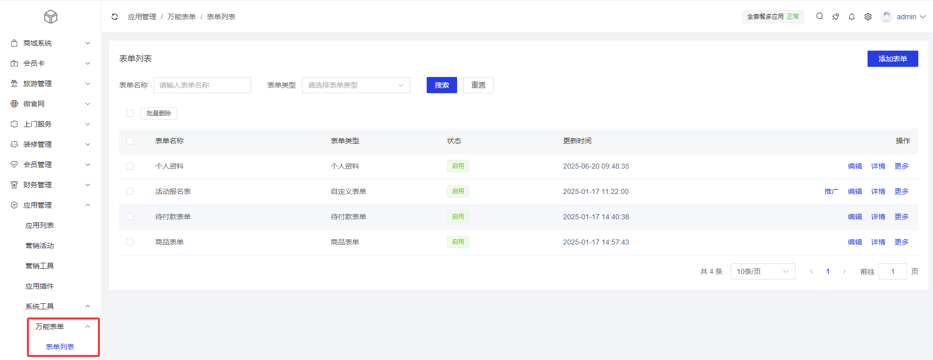 作为DIY页面装修的核心交互组件,支持用户通过「可视化拖拽 + 字段配置 + 规则自定义」的方式,零代码快速搭建个性化表单(如报名表单、问卷调研、信息收集、预约申请等),覆盖多场景数据采集需求,同时提供表单提交、数据管理、权限控制等全流程能力,确保数据采集高效、安全、可追溯。