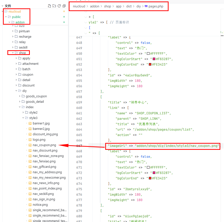 ];注意:如果装修页面时上传了图片,在维护页面模板时,要把路径改成相对路径,放到自己开发的插件目录下的图片资源文件的存放位置自行管理