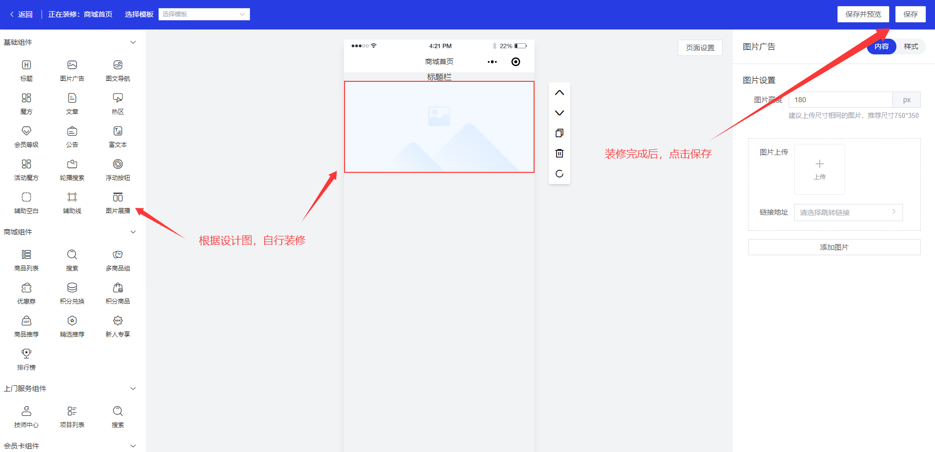 ];维护自定义页面模板时,根据美工设计的原型图,先装修出来