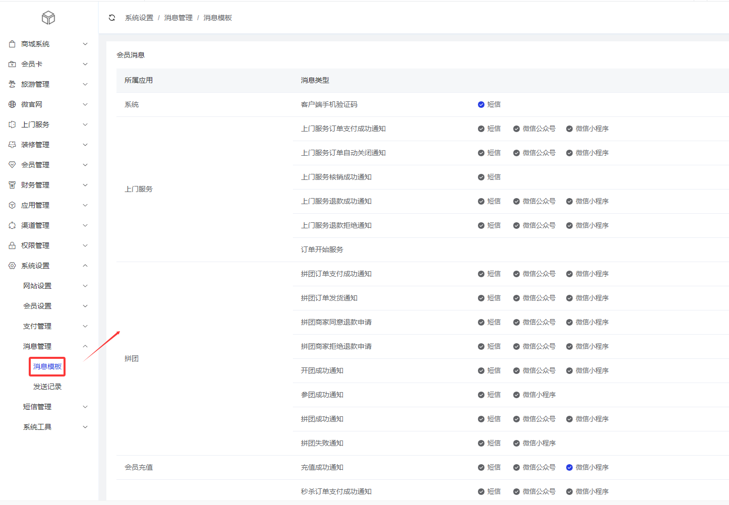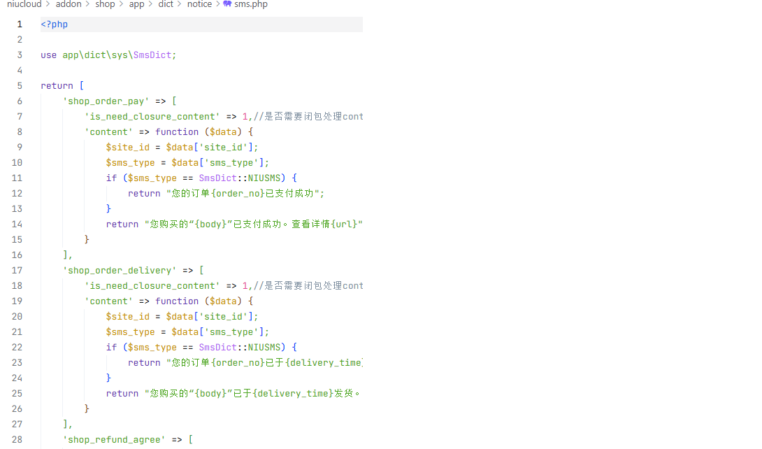 sms.php 短信消息模板内容
