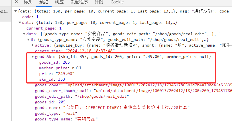 $search_model = $this->model->field($field)->withJoin([ 'goodsSku' => [ 'sku_id', 'sku_name', 'sku_image', 'sku_no' ] ])如图: