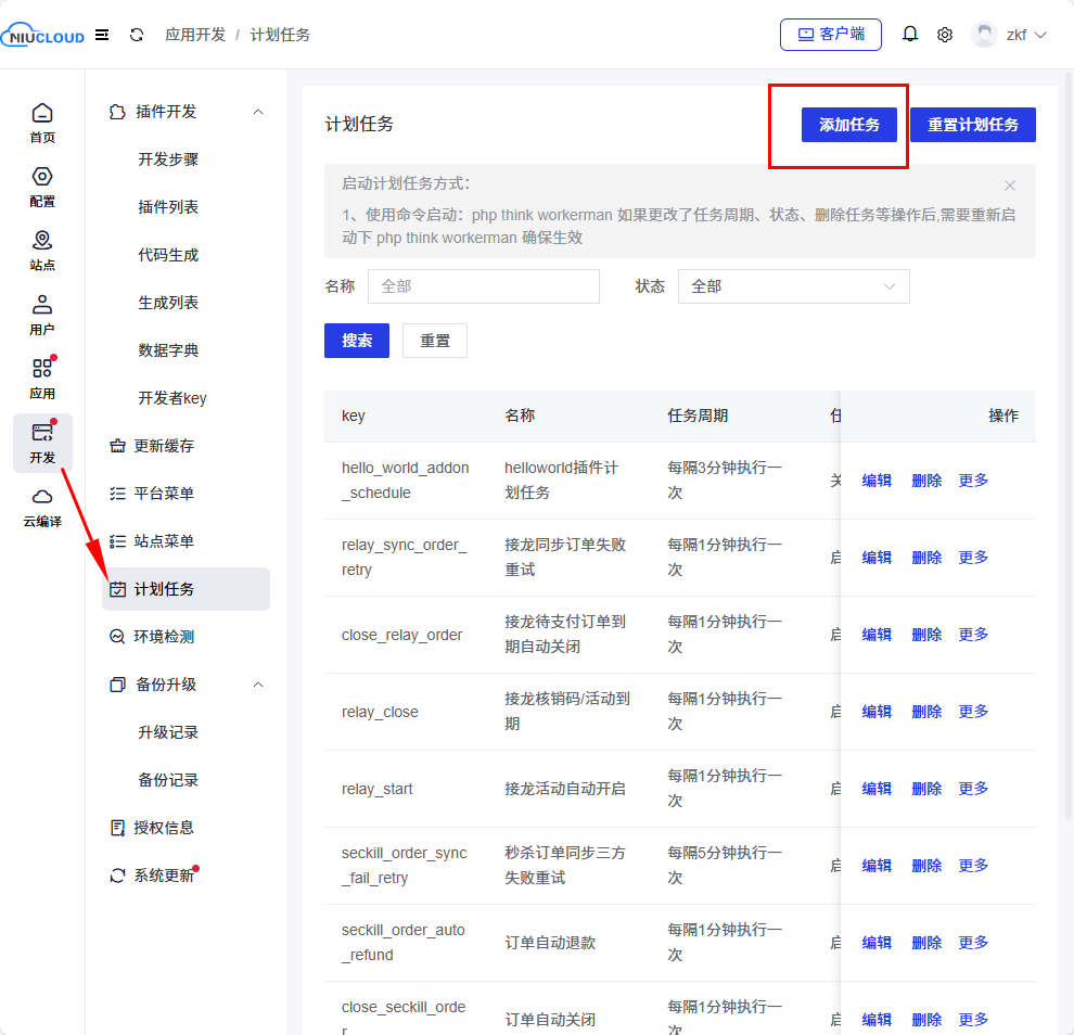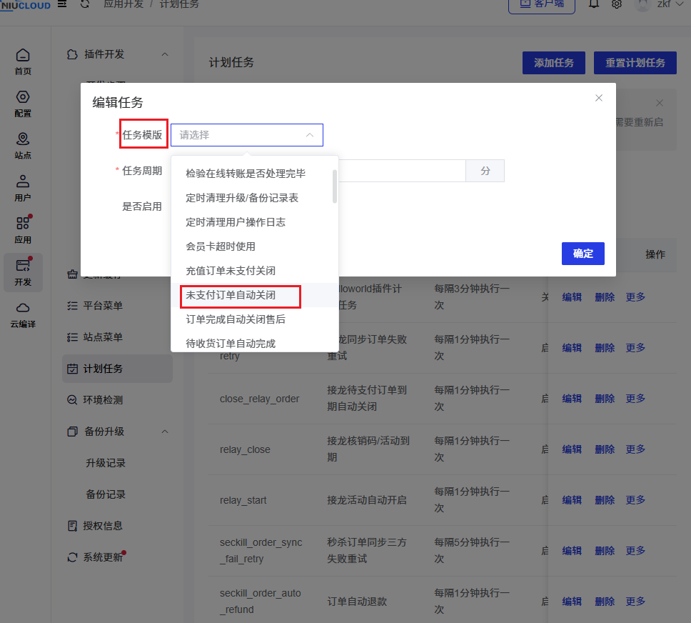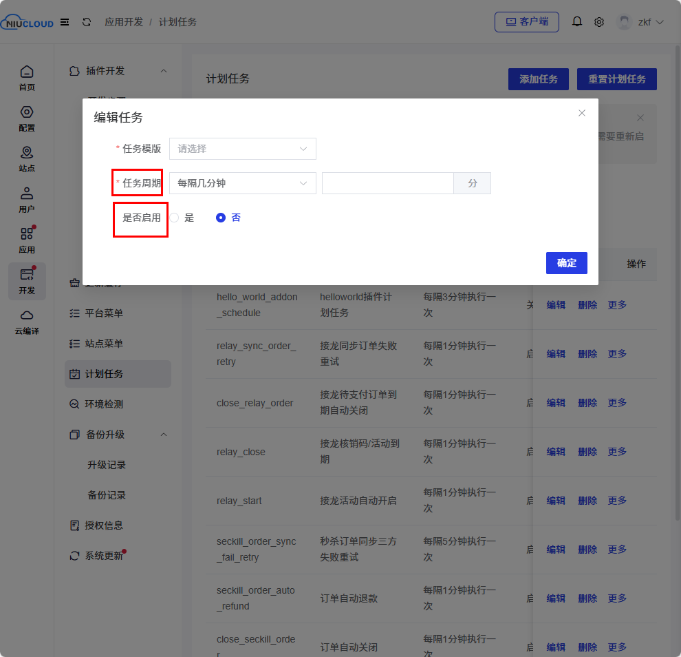 后台点击开发->计划任务->添加任务