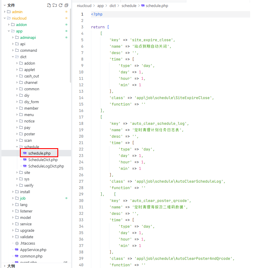 在 niucloud\app\dict\schedule\schedule.php 类中新增任务项