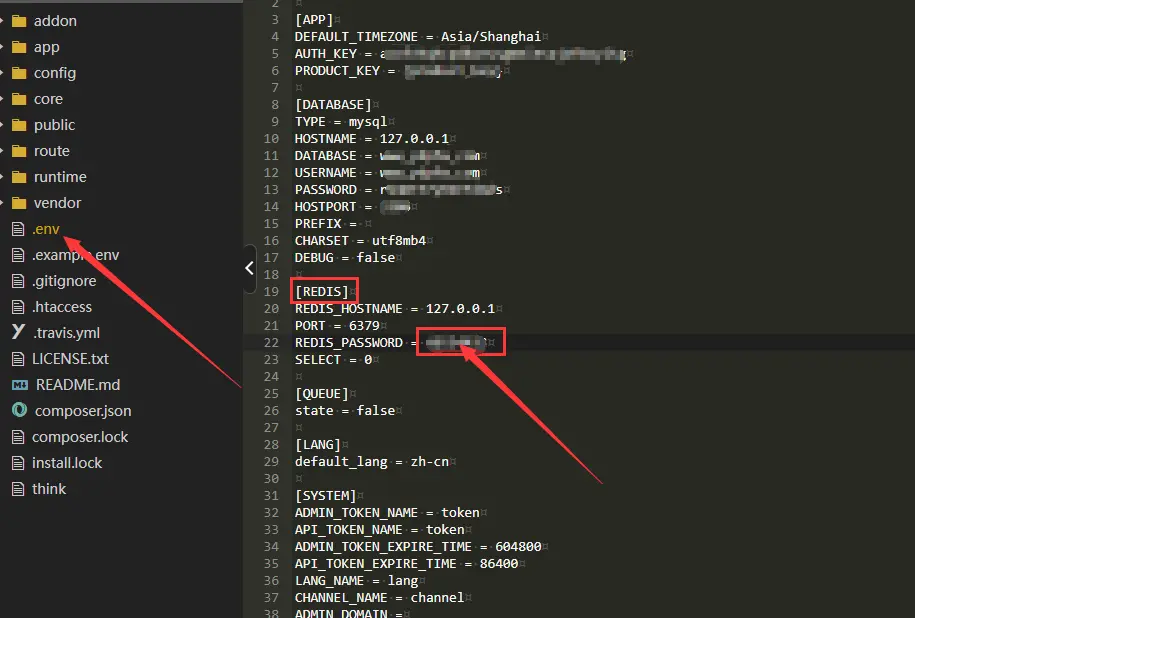 3、如果你的redis设置过单独的密码,那要在niucloud/.env文件中也添加redis密码,如果没有配置过则忽略这一步。