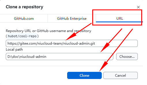 项目的Git拉取地址为:https://gitee.com/niucloud-team/niucloud-admin.git