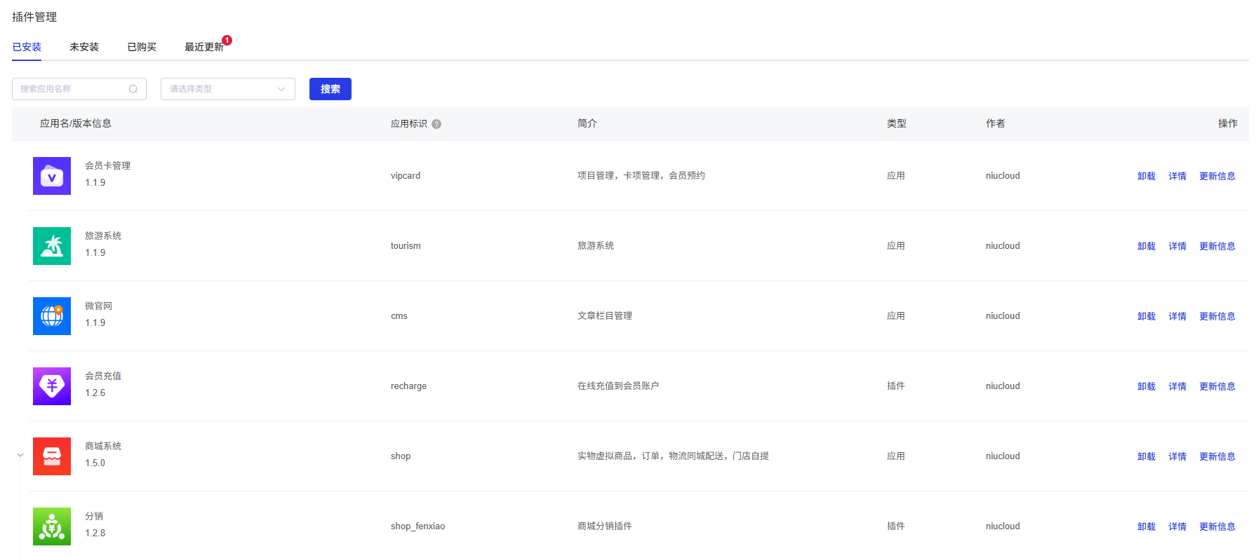 应用/插件卸载:可对要卸载的插件进行卸载操作。