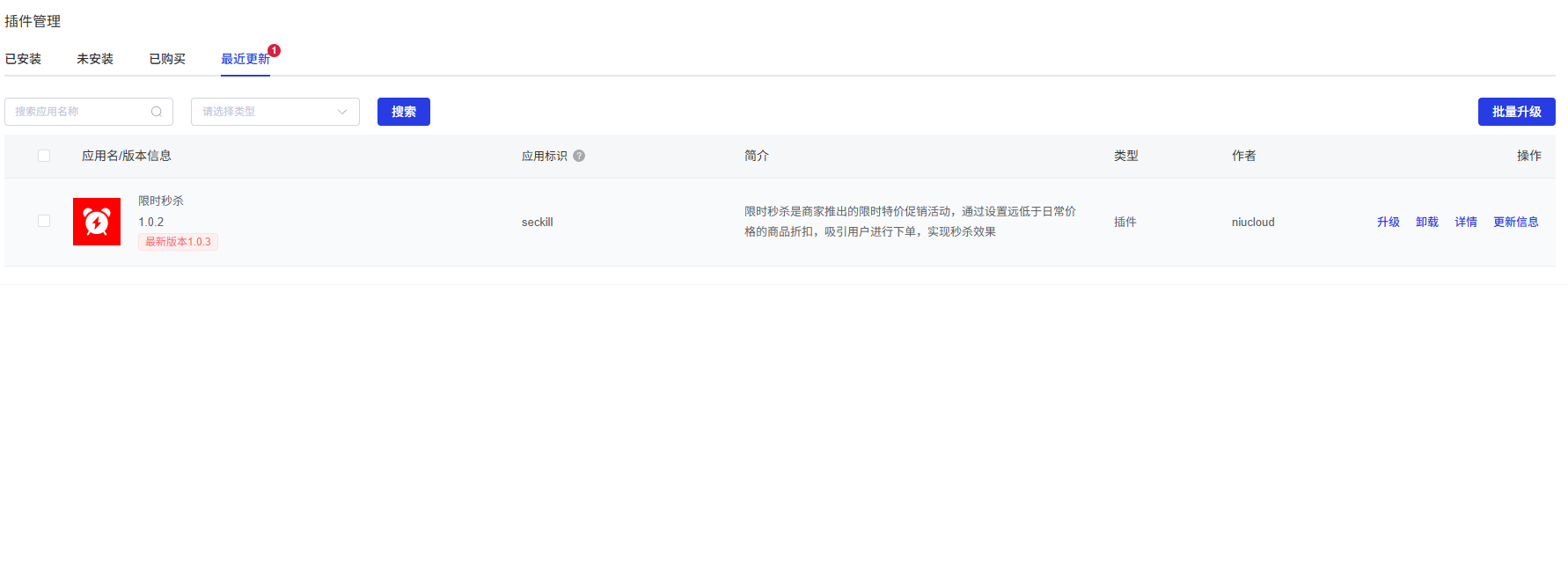 批量升级:可选择多个插件进行批量升级操作。