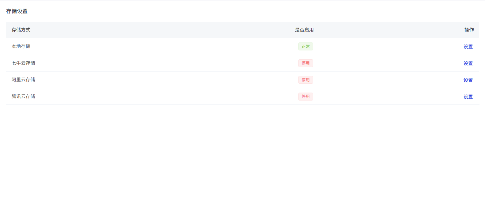存储方式:显示存储类型的名称(本地存储、七牛云存储、阿里云存储、腾讯云存储)。