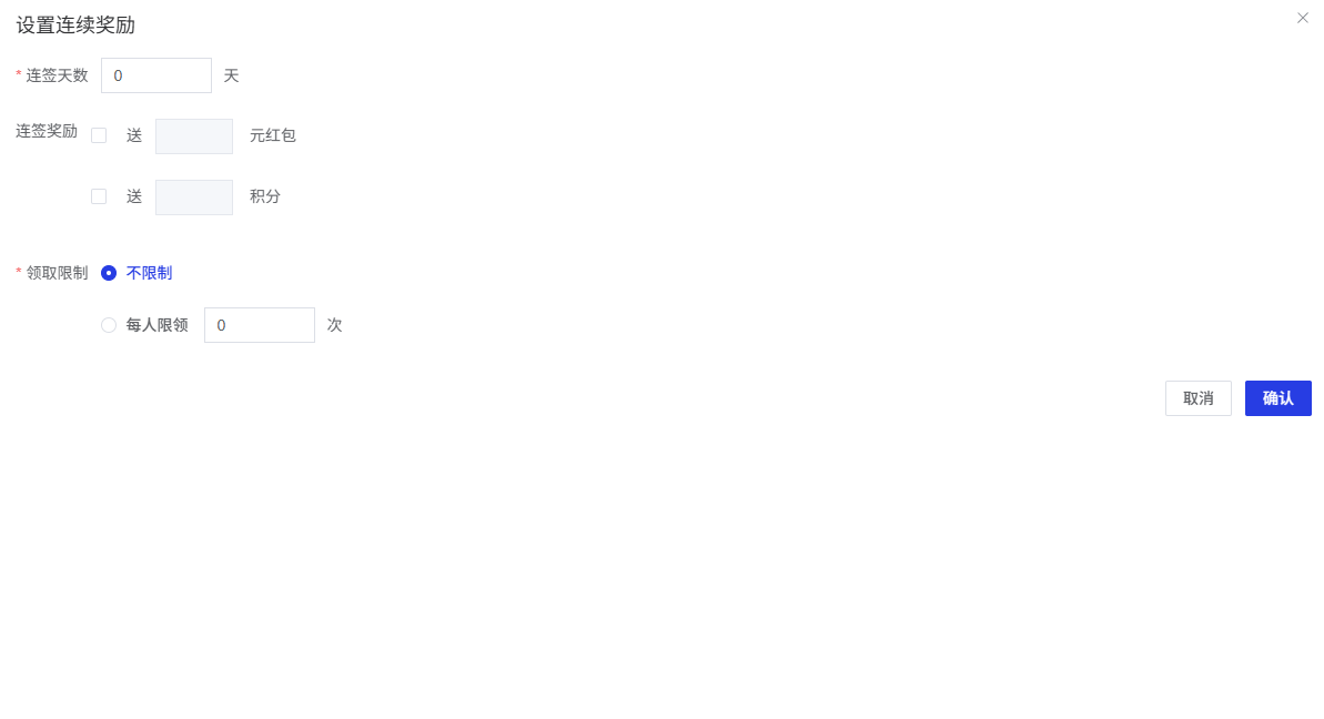 连续签到奖励设置时,超过固定周期天数的奖励将不向用户展示和发放。