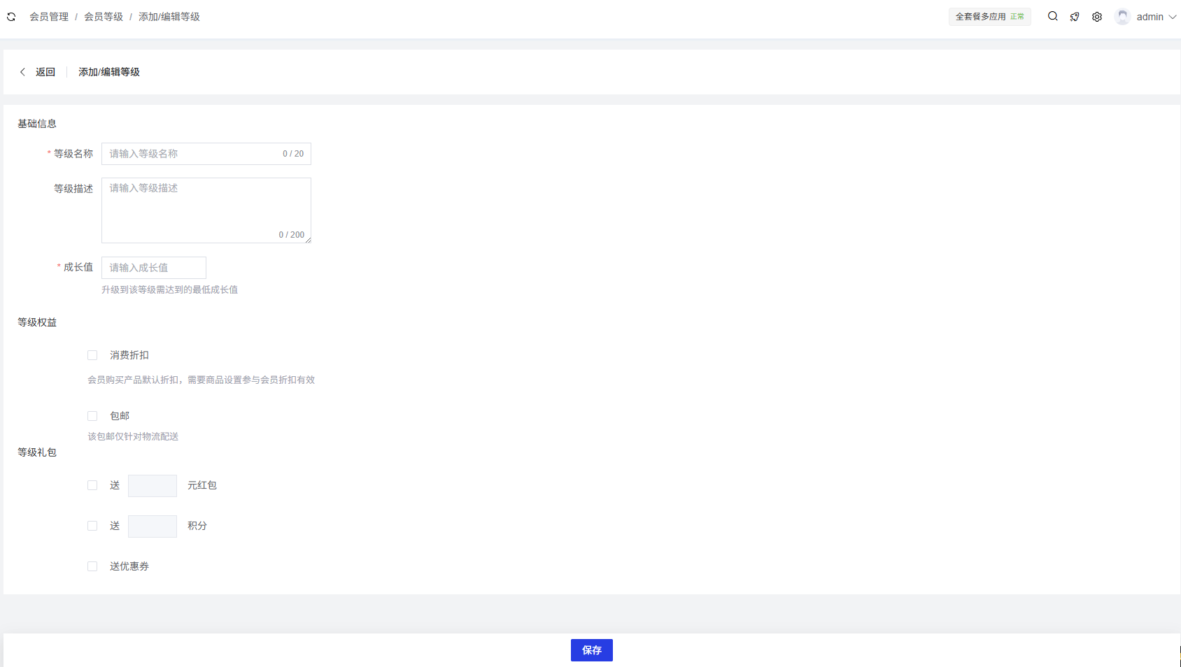 添加/编辑会员等级