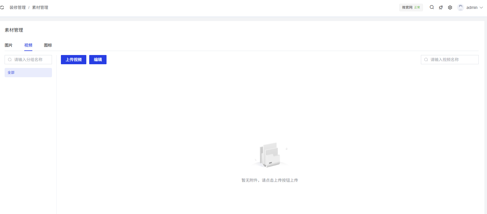 视频管理标签页用于上传和管理系统中的视频素材。
