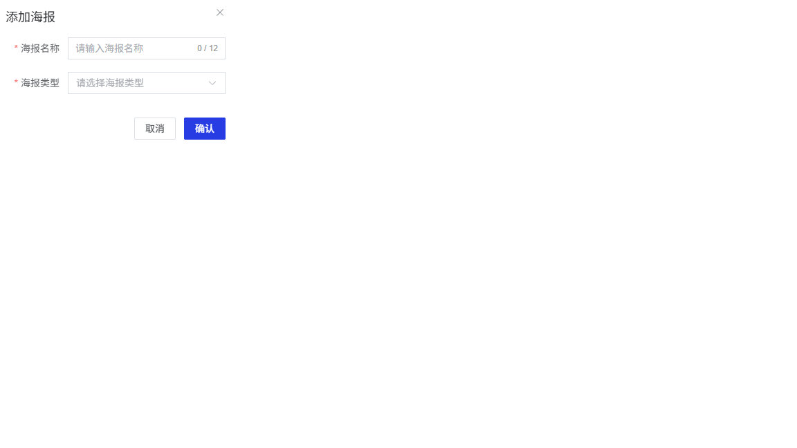 确认按钮:确认添加海报,创建成功后将跳转到海报编辑界面。