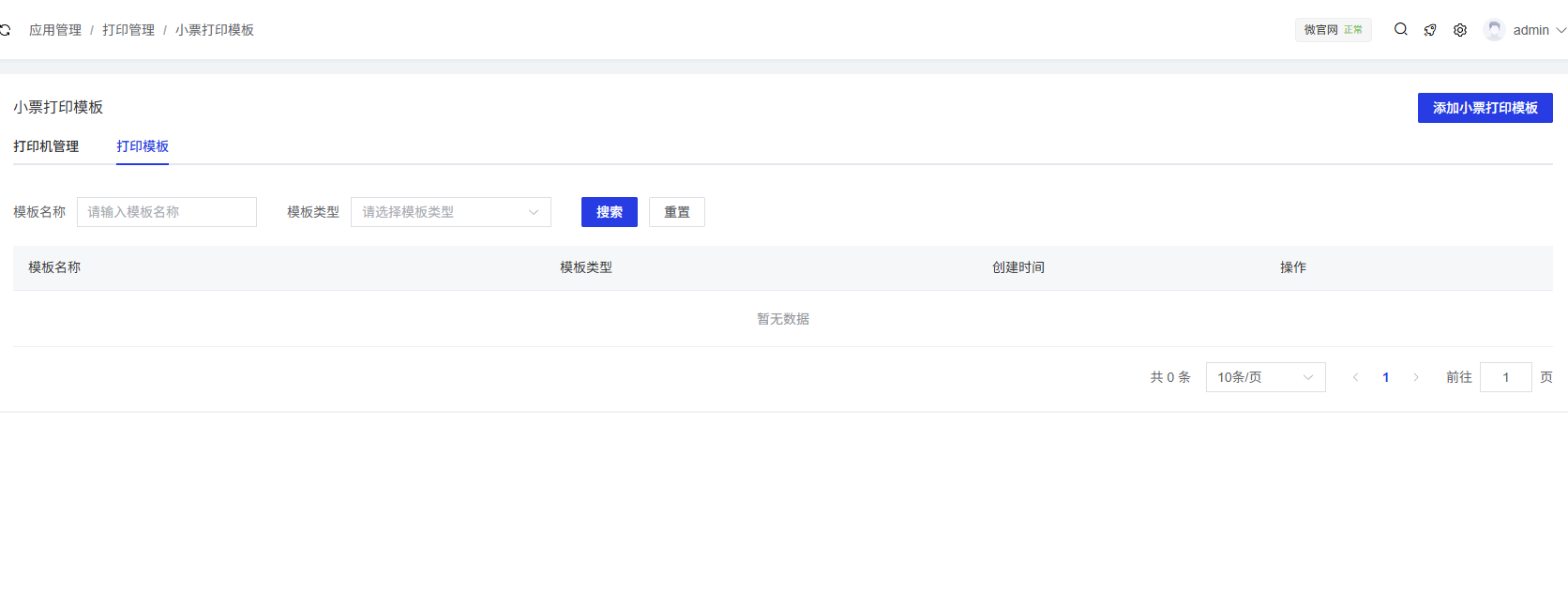 打印模板页面用于查看和管理已创建的打印模板。