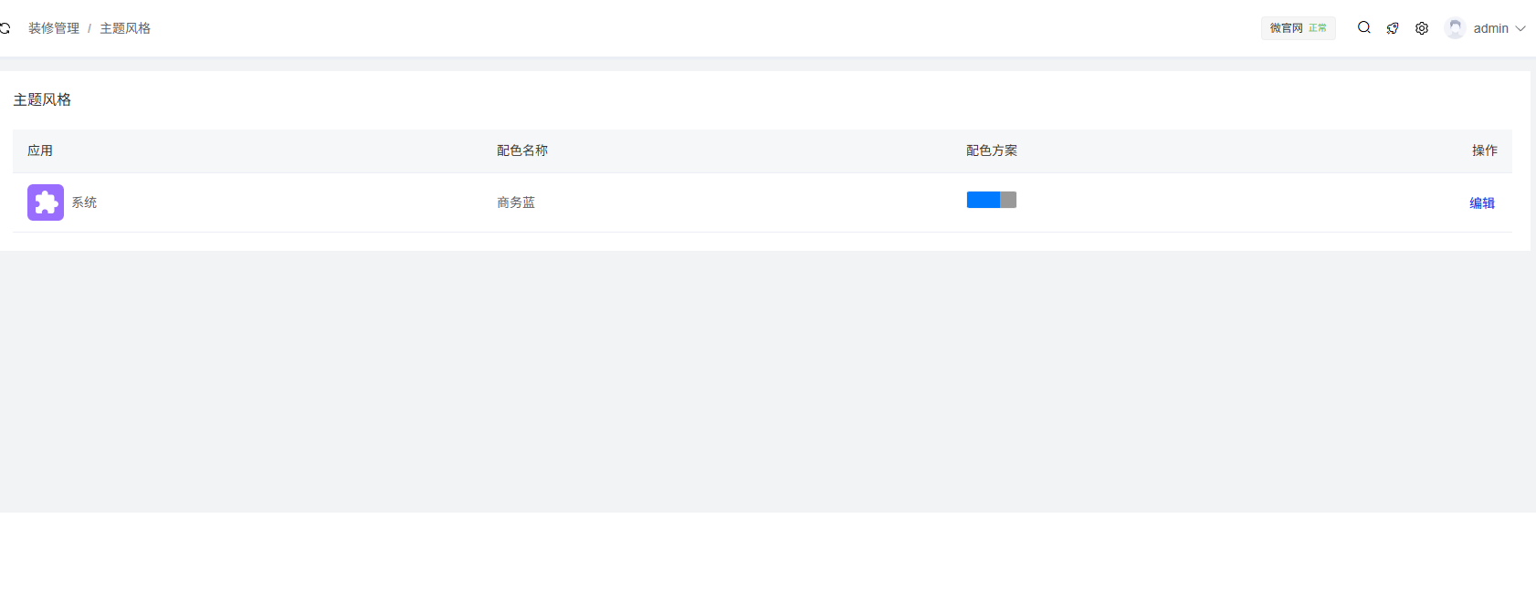 主题风格是用于配置和管理系统界面颜色主题的功能模块,支持自定义系统的配色方案,包括主色调、辅色调、背景色等,以满足不同品牌和用户的视觉需求。