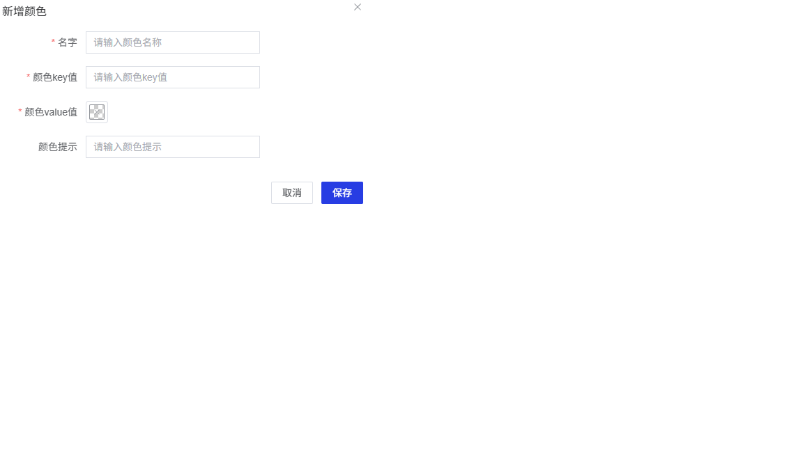 颜色key值:输入自定义颜色的变量名(key值不能与当前存在的key值重复)。