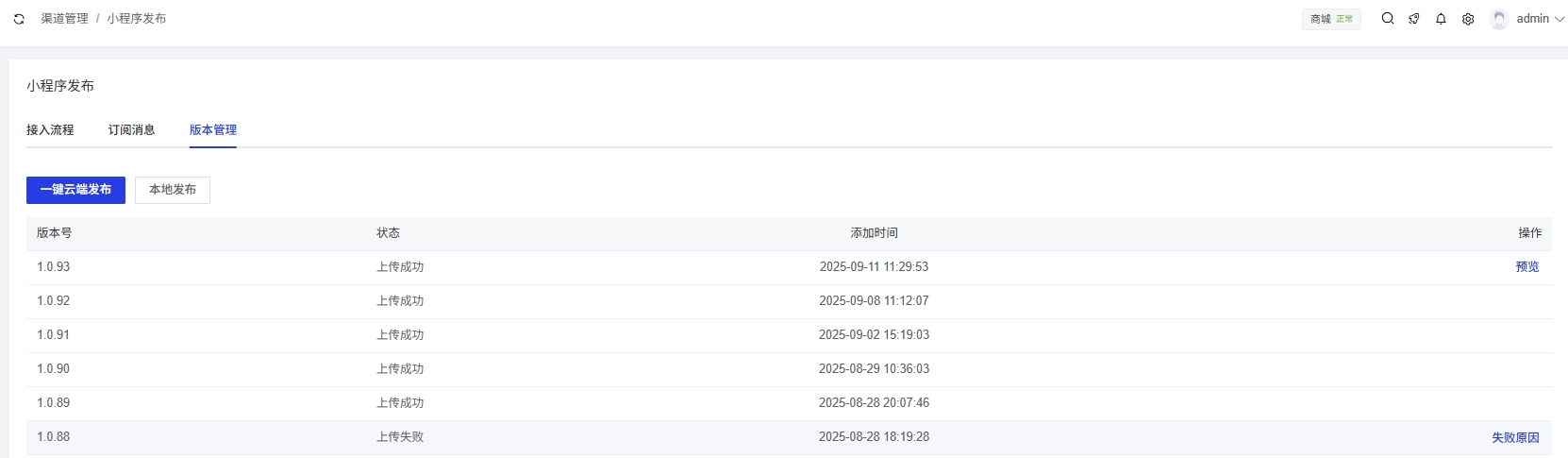 版本管理模块用于管理微信小程序的版本发布、上传和状态跟踪,支持查看历史版本和进行版本切换。