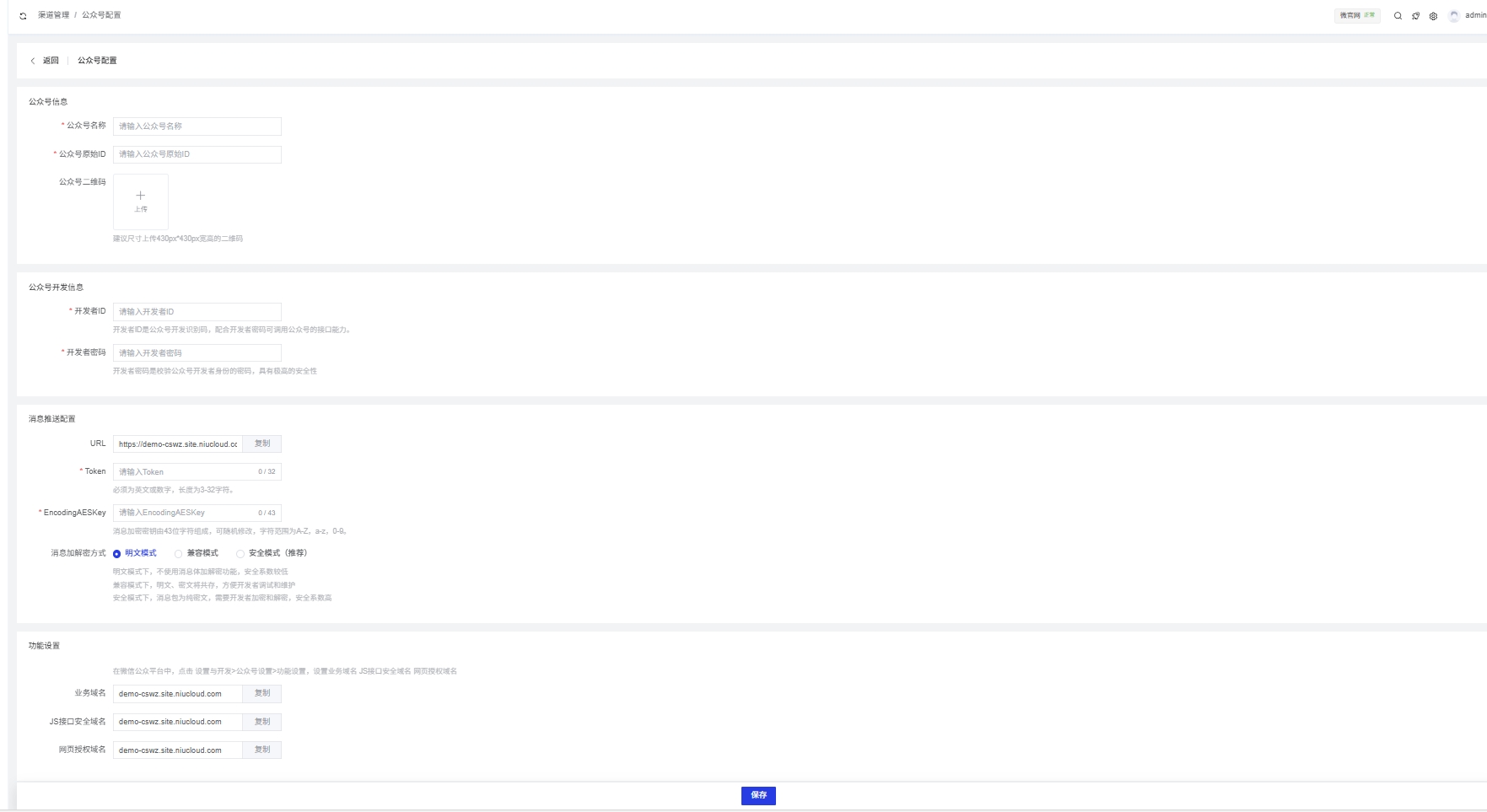 微信公众号模块用于管理系统与微信公众号的对接与配置,支持公众号认证、公众号设置、自定义菜单创建、模板消息管理以及自动回复功能,帮助用户实现微信公众号的个性化运营和消息互动。