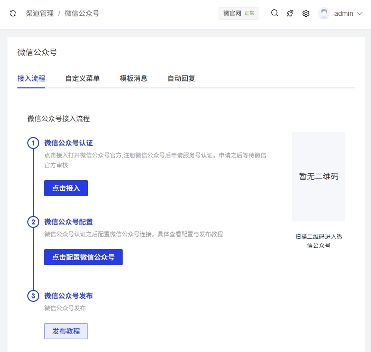 管理员需要用微信公众号管理员账号进行扫码授权认证。
