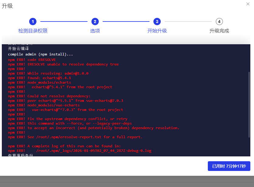 升级框架时报错
