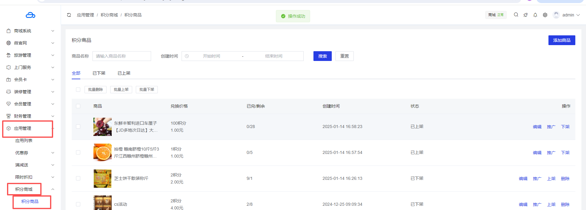 应用管理 > 应用列表 > 积分商城 > 积分商品