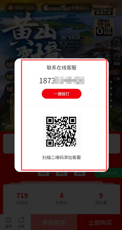 客服设置:支持设置客服电话、客服二维码、客服引导话术