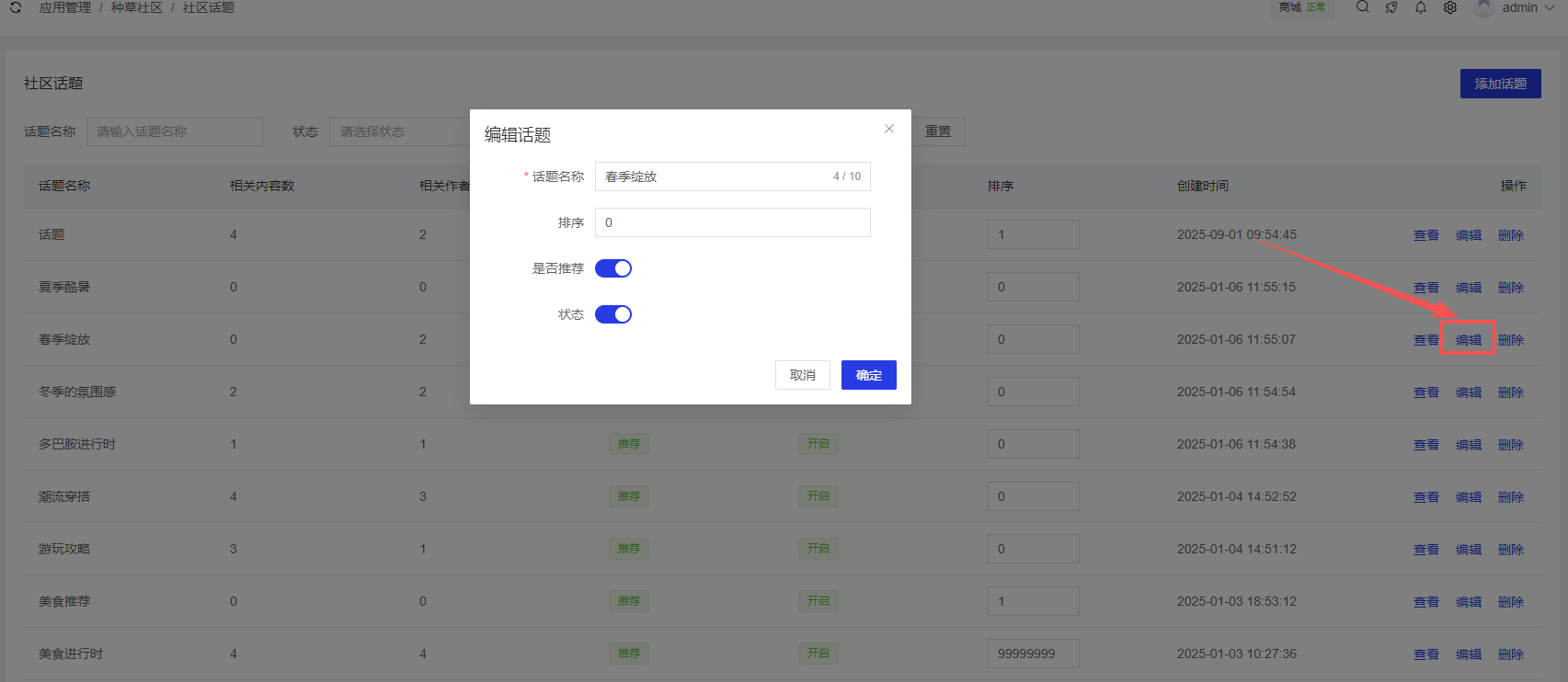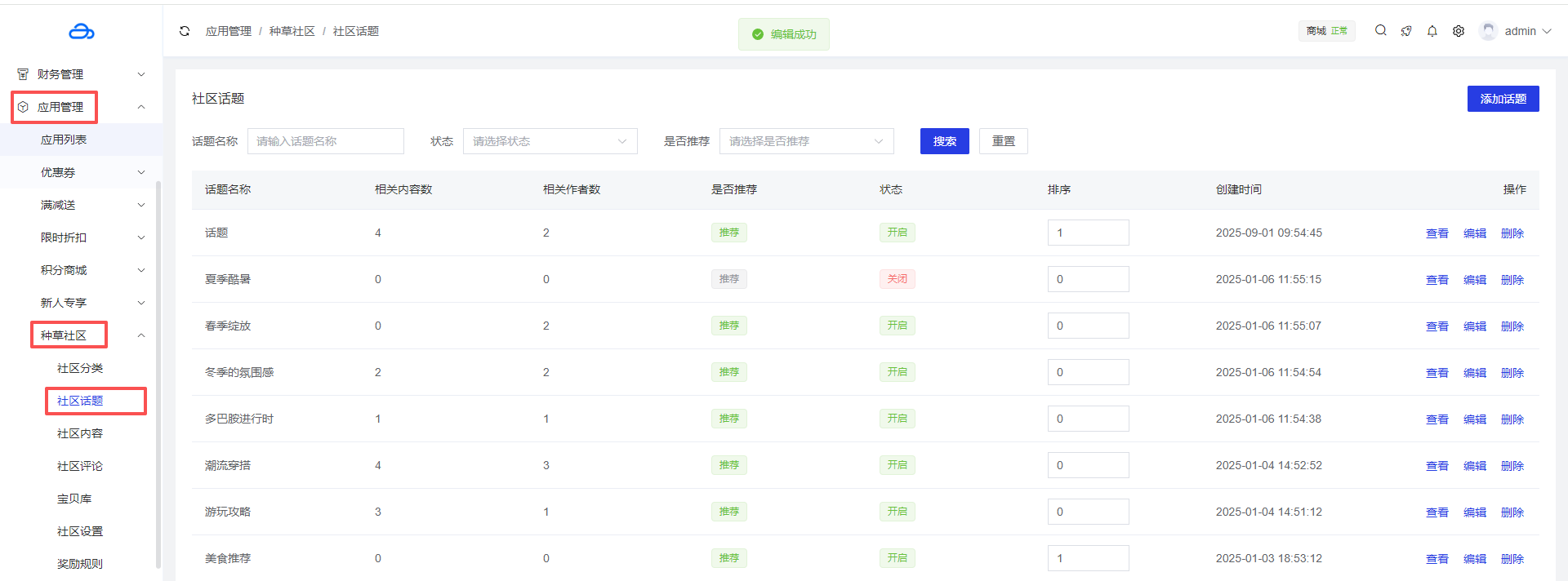 应用管理 > 应用列表 > 种草社区 > 社区话题