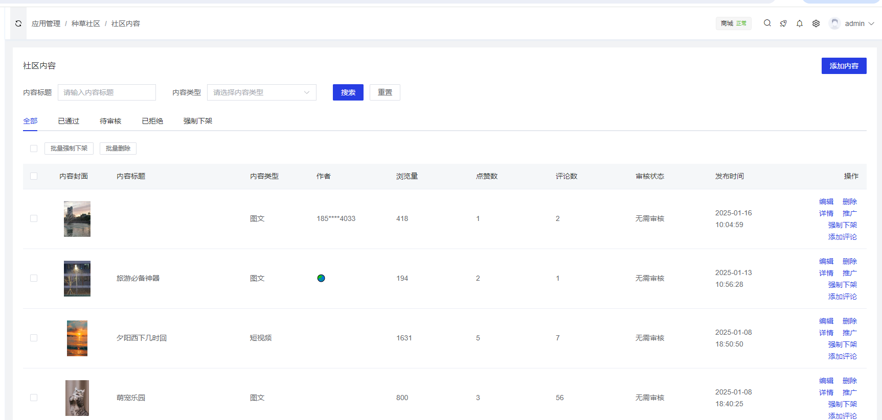 应用管理 > 应用列表 > 种草社区 > 社区分类