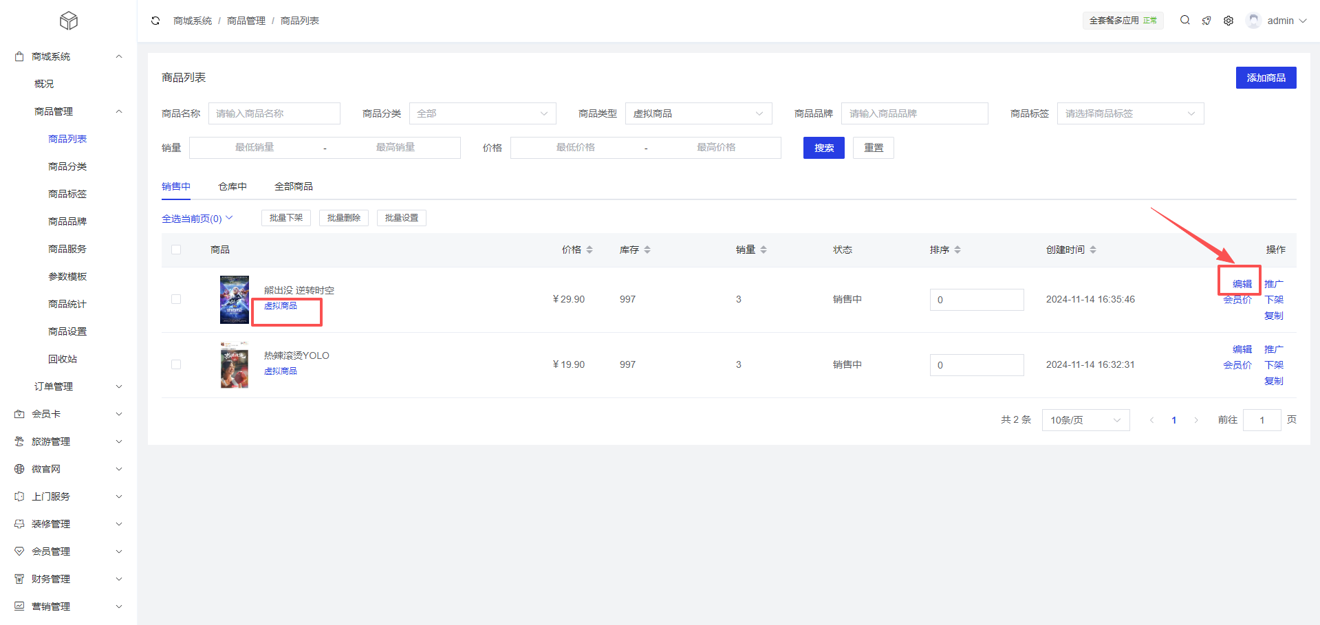- 商品服务:商城系统 >商品管理 > 商品服务 (点击跳转)