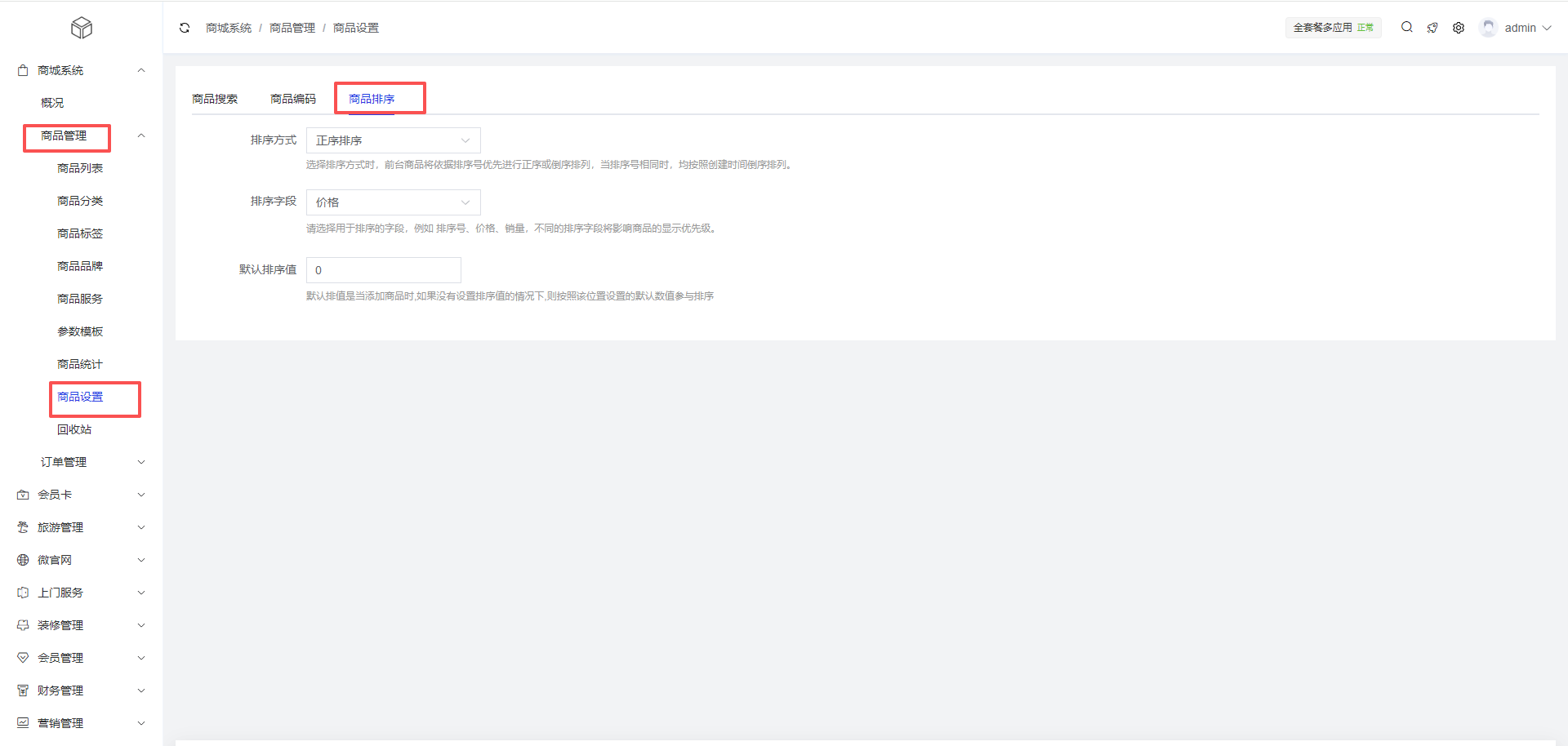 | 默认排序值 | 商品未设置排序值时的 fallback 值 | 确保新商品有合理的初始排序位置 |