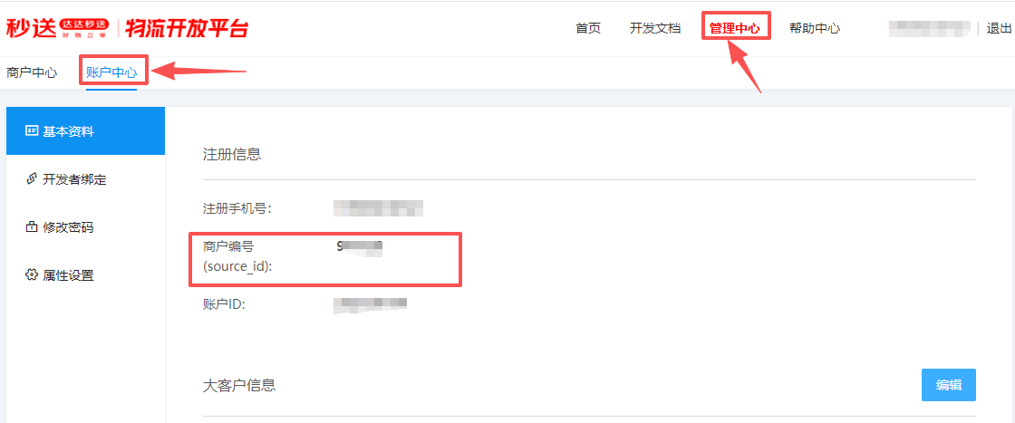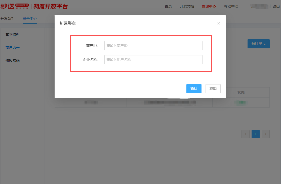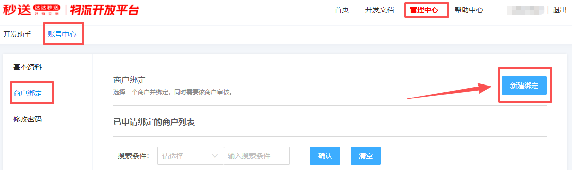 步骤5:进入管理中心,绑定第三步获取的商户编号