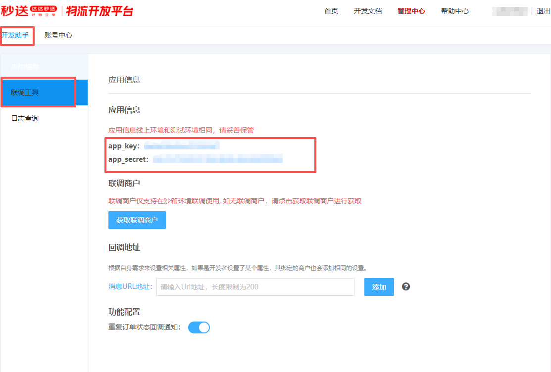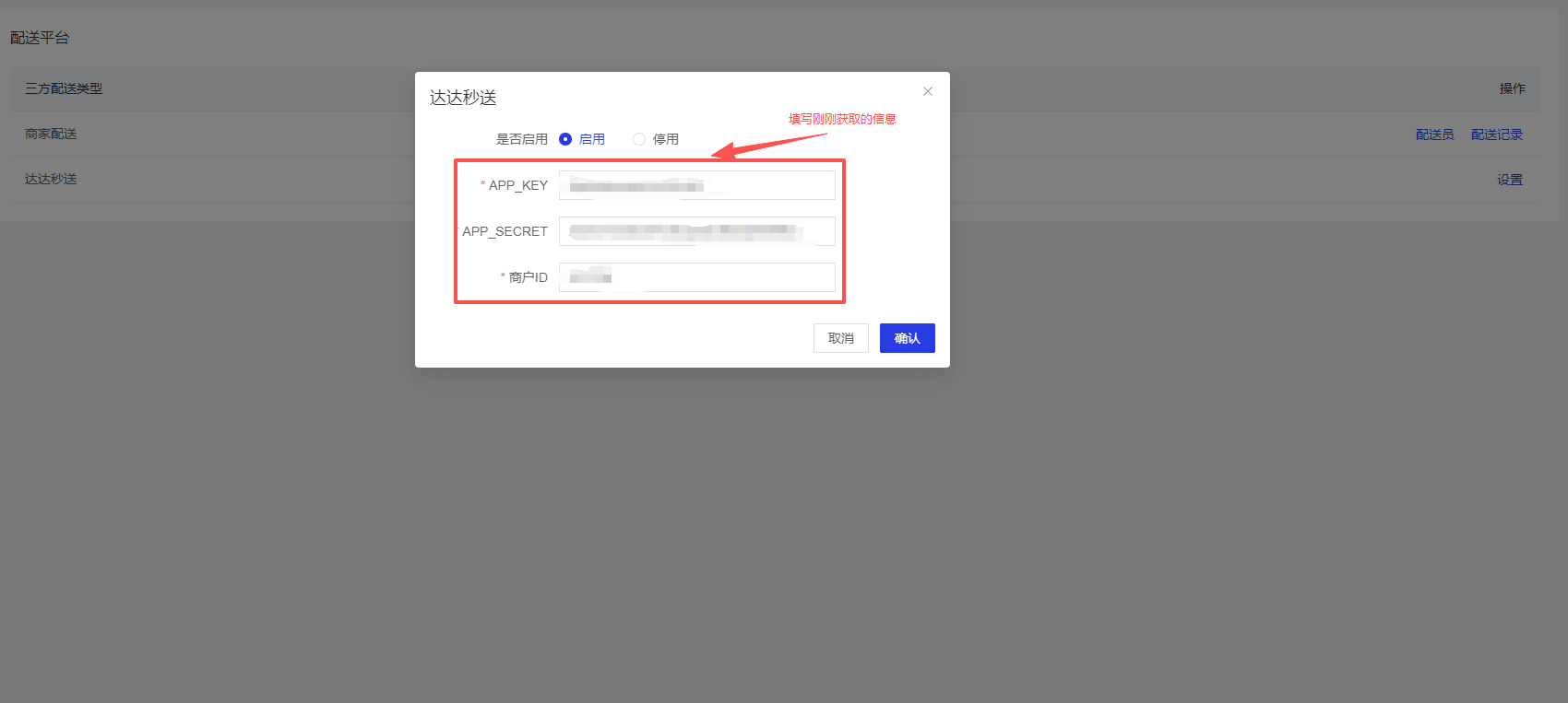 步骤7:将获取到的app_key和app_secret配置到平台后台