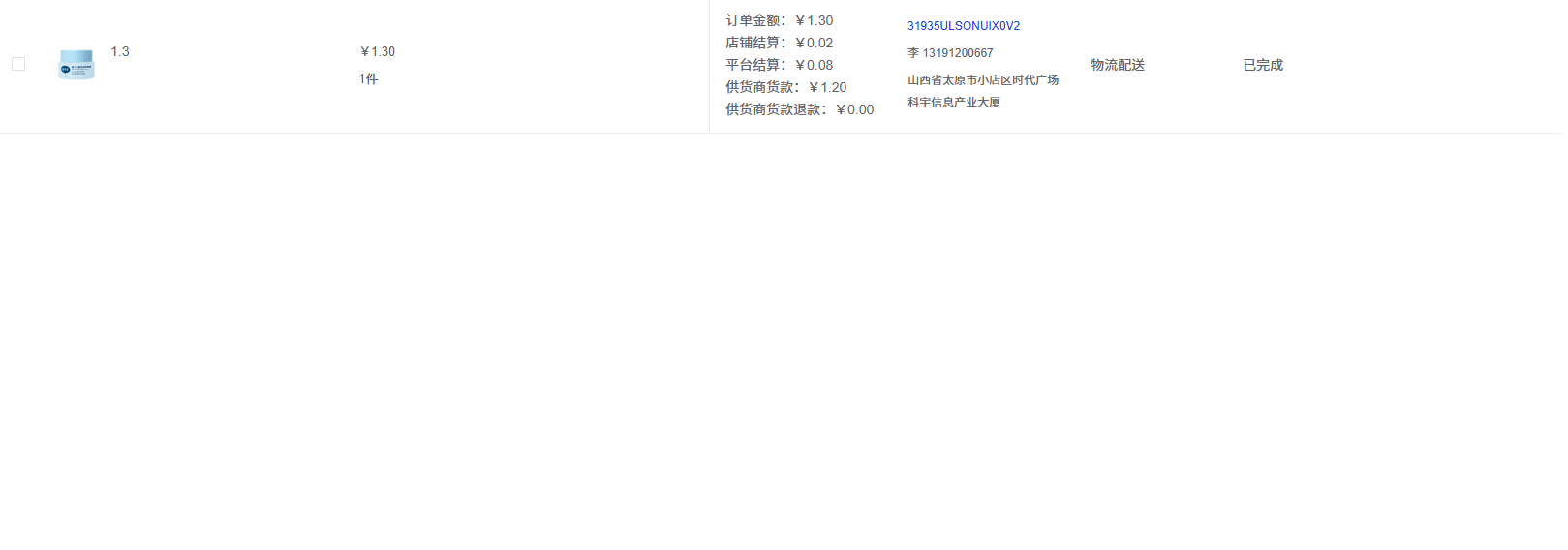 平台手续费(结算)= 订单金额(1元)* 商城平台手续费(10%)= 0.1元