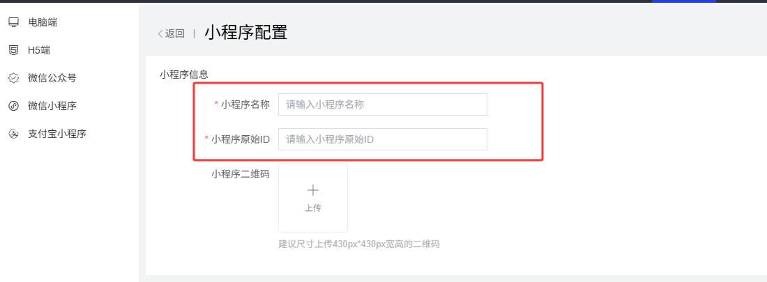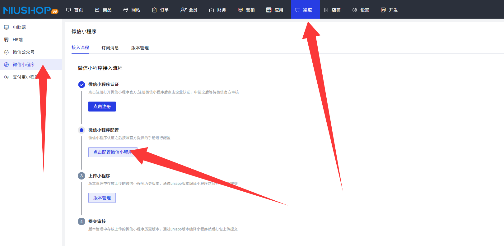 1.配置小程序需点开--渠道--微信小程序--点击配置微信小程序