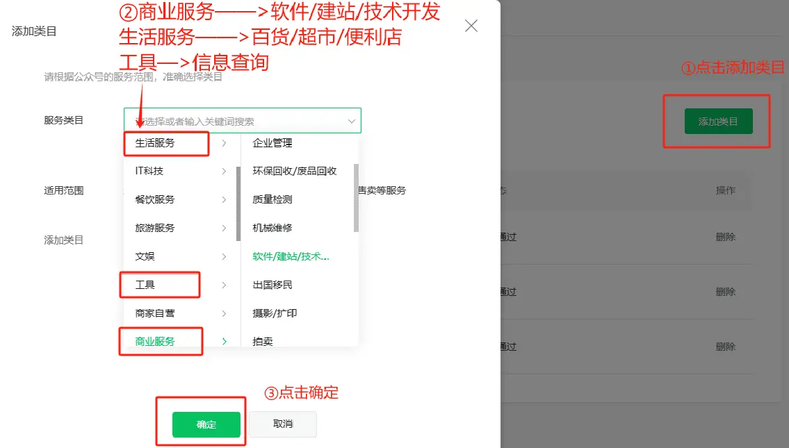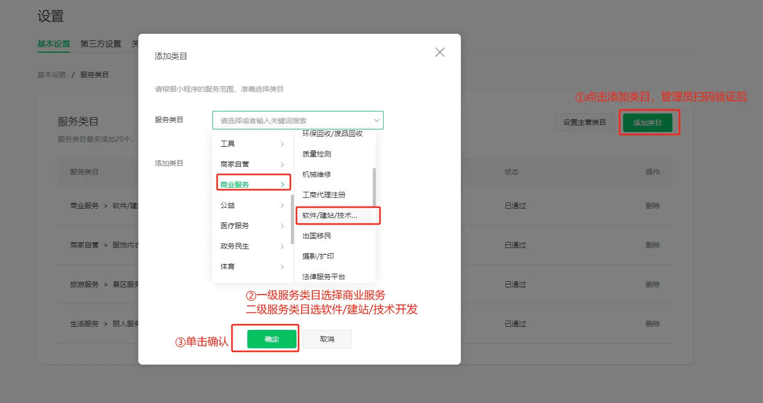 2.管理员扫码验证后,添加类目: