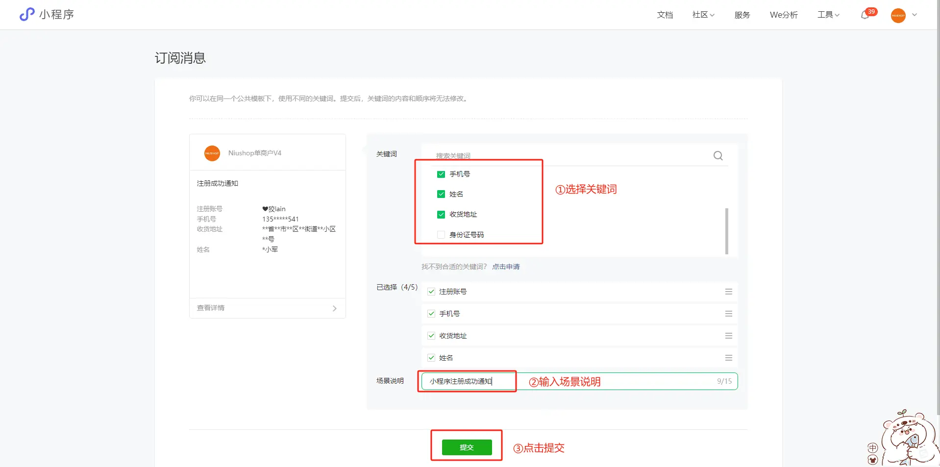 5.填写订阅消息