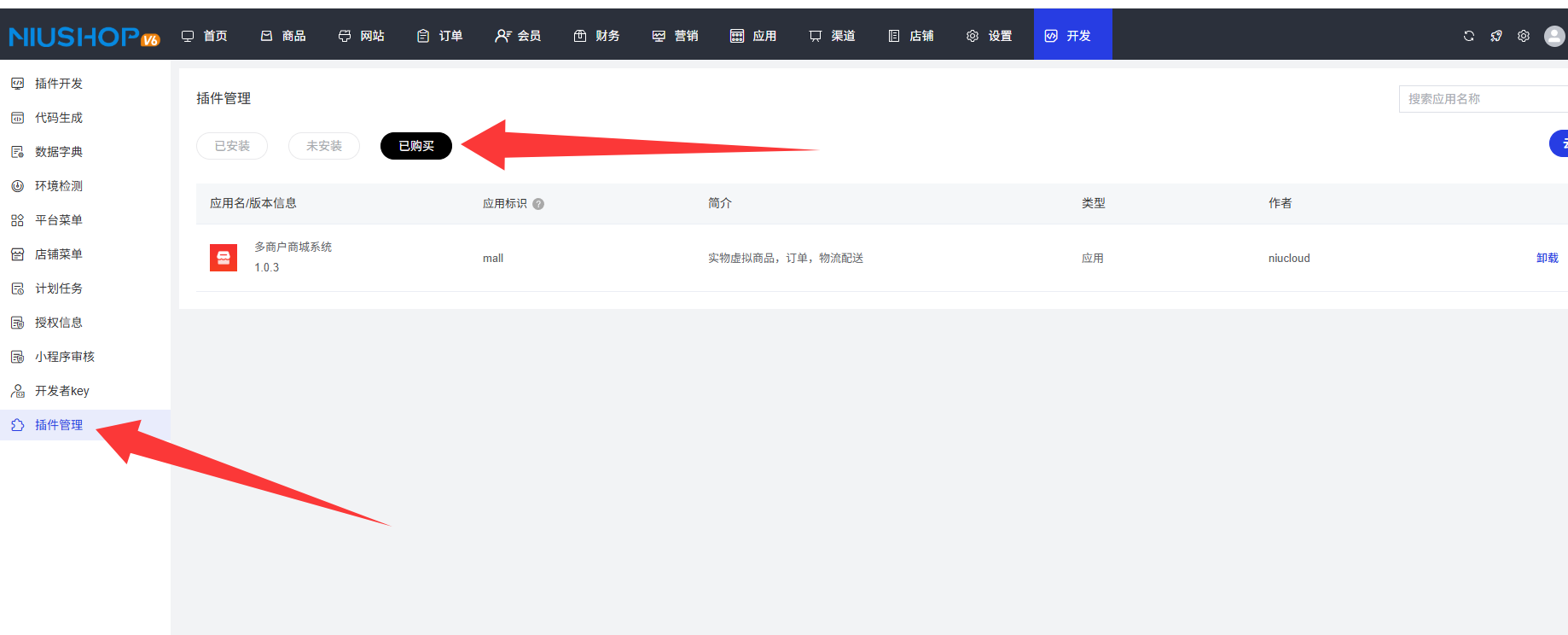 授权绑定后,在框架中已购买应用中就会出现在官网购买的应用。