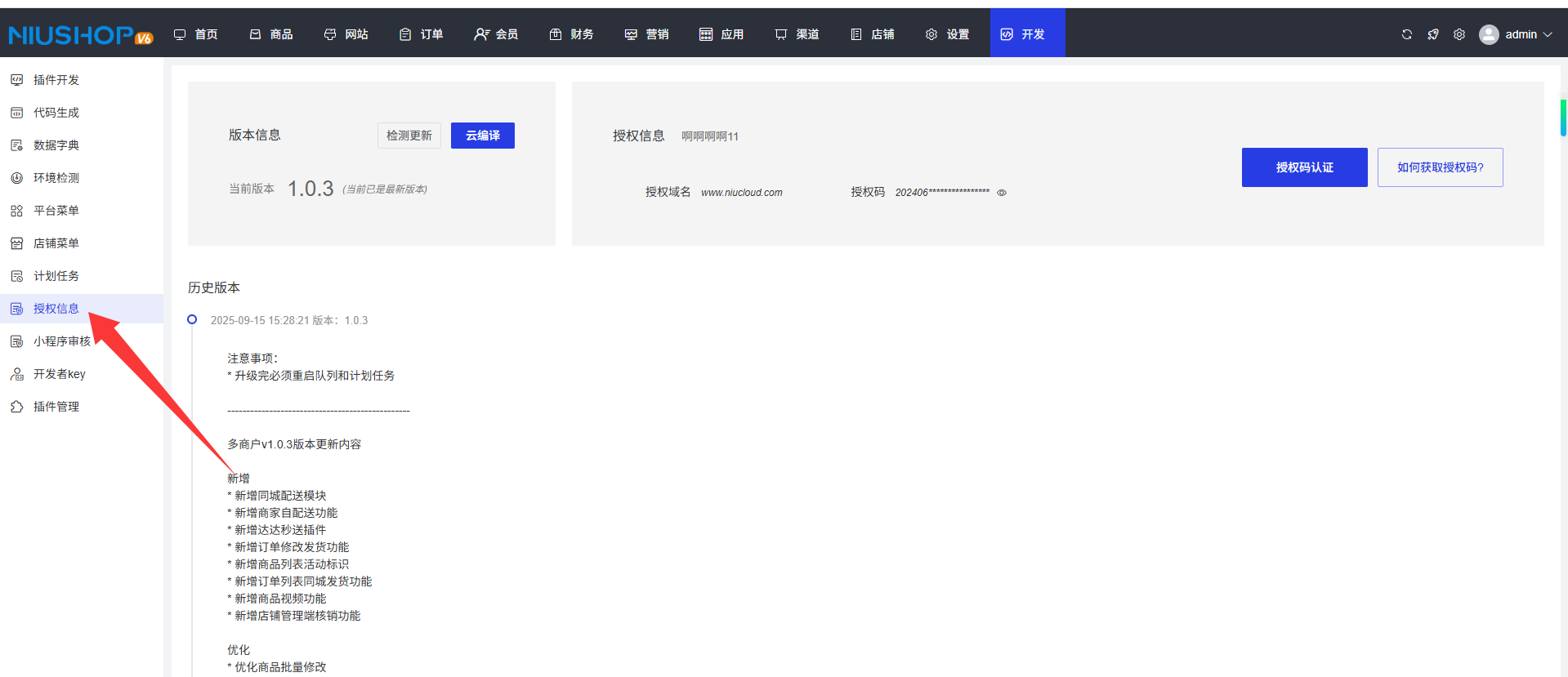 购买授权之后下载源码.安装之后,在授权信息处绑定授权码