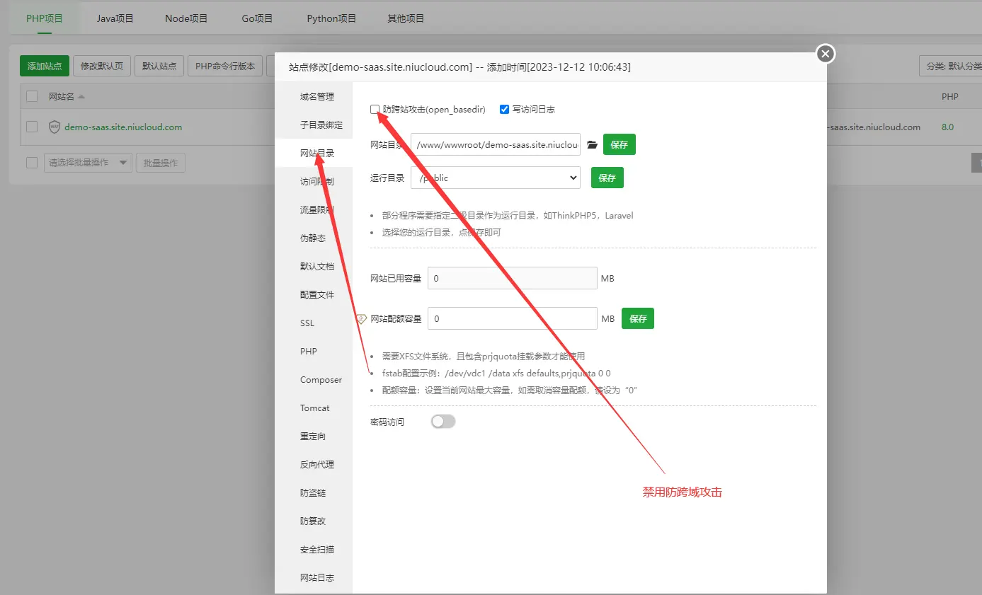 关闭宝塔中防跨域按钮: